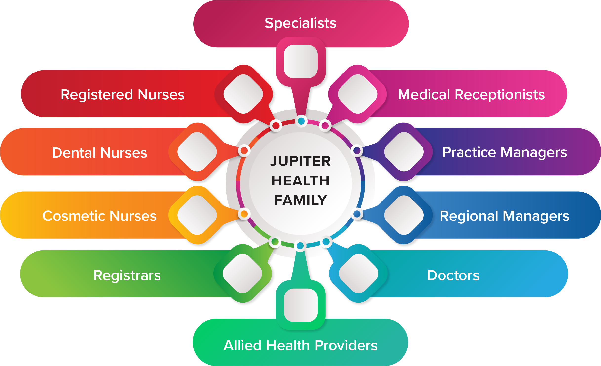 Jupiter Health and Medical Services is a group of medical centres throughout Western Australia. These medical centres include General Practice, Dental, Cosmetic and Skin Cancer Clinics as well as Specialists and Allied Health. Our objectives are to work towards improving services to patients and opportunities for doctors and staff to grow and expand.